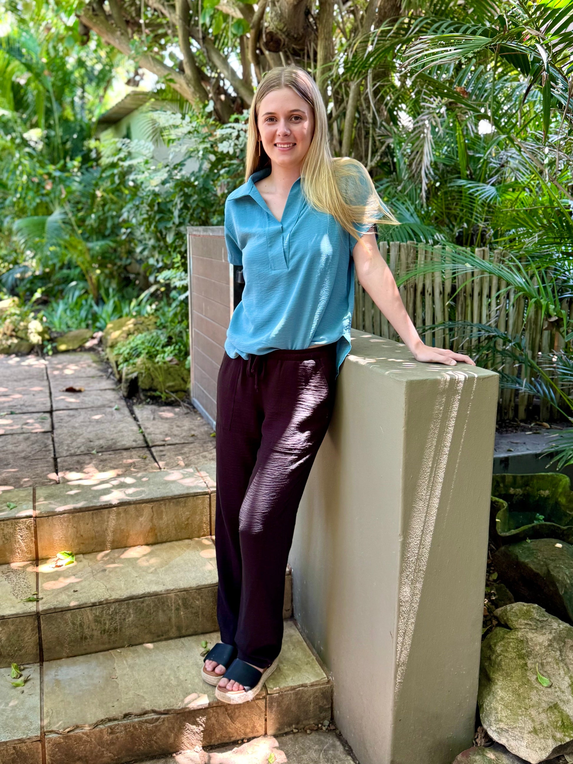 Short sleeves with a neat collar offers a refined yet relaxed look. A gently scooped hem at the front and back for a flattering fit, and easy tucking or layering.